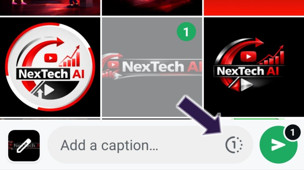 इमेज या वीडियो select करें → Send button के पास 1 icon पर क्लिक करें